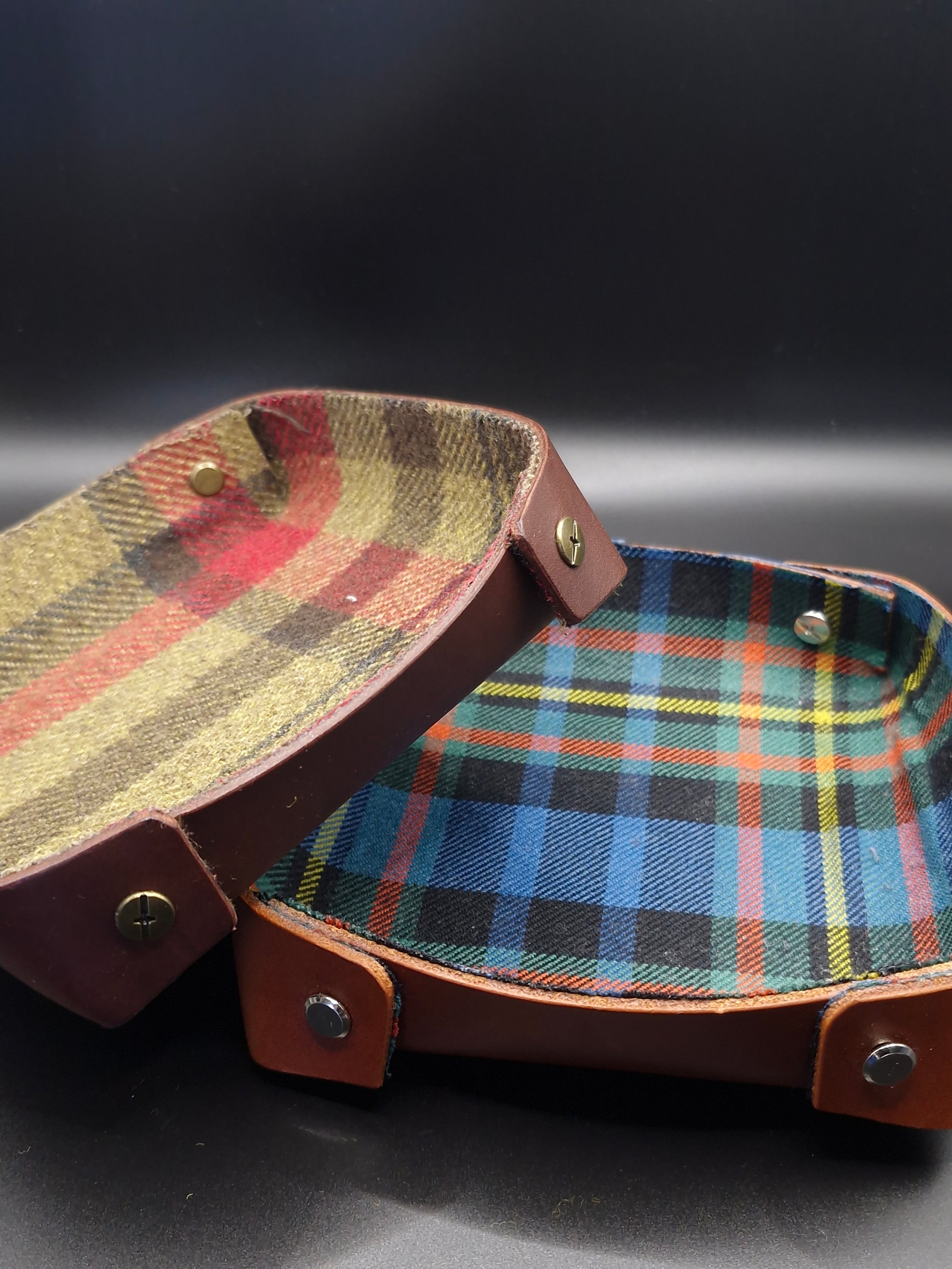Create your own personal catch all tray with our customisable Catch All Trays, available in a variety of leather colours or even personalised with your own tartan or Harris tweed. Send us a message to create your perfect product.